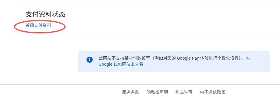 也就是 你绑定信用卡之后谷歌给你的支付ID 这个地方绑定的是美国的才真的算美区账号,如果是其他地区的账号 拉倒页面最下面,有个支付资料状态,点击关闭支付资料 重新再开一个支付id 继续用这个地区的梯子去购买就成功了
